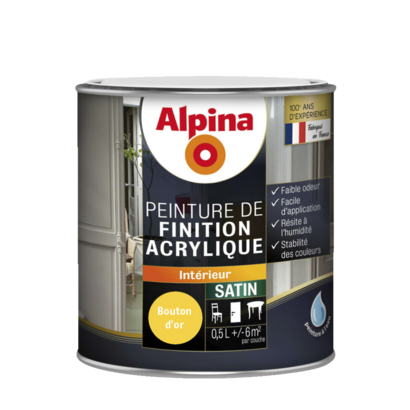 La peinture de finition Alpina est idéale pour la décoration des boiseries intérieures de la maison, même dans les pièces humides. Formulées à base de résine acrylique, son aspect satiné facili