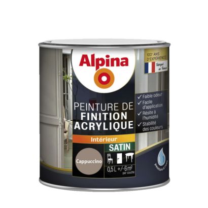 La peinture de finition Alpina est idéale pour la décoration des boiseries intérieures de la maison, même dans les pièces humides. Formulées à base de résine acrylique, son aspect satiné facili